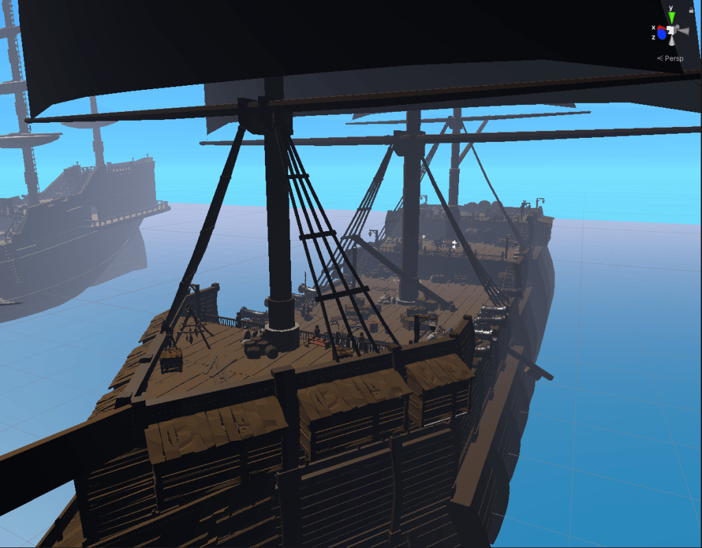 To be able to recreate the setting, we decided to do a bit of research on the Golden Age of Piracy and types of ships (and crews) which sailed across the Atlantic Ocean in the 18th century. We looked at everything from what kind of roles the crew had on their long journeys to what kinds of items they were transporting and how they managed to control such large ships. Then we stumbled upon this next image, which inspired us to create our level. We wanted our ship to be more trade-oriented, so we made it to be more of a galleon than man-of-war.