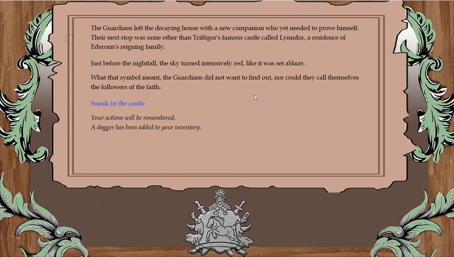 Inspired by many fantasy adventures from various books, movies, and games, The Fall of Valleniya is an interactive fiction set in a medieval fantasy world created for web browsers. The game has the best of the two worlds – an immersive narrative structure from books and engaging choice-making elements from games. With the help of Twine’s practical construction, the application offers an intriguing story (with multiple endings) that changes depending on the player choice.